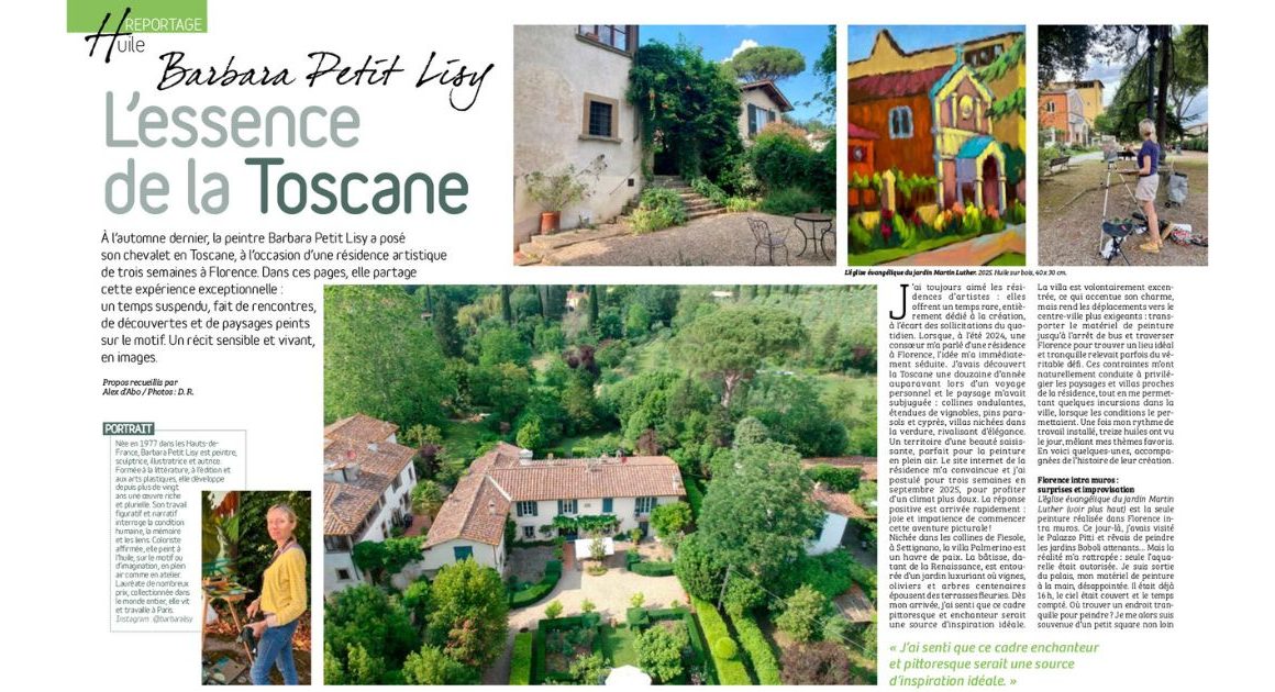 Lors de ma résidence artistique à Palmerino, j’ai eu le plaisir d’être interviewée par Grace Lucas pour un article consacré à mon travail durant ce séjour créatif.